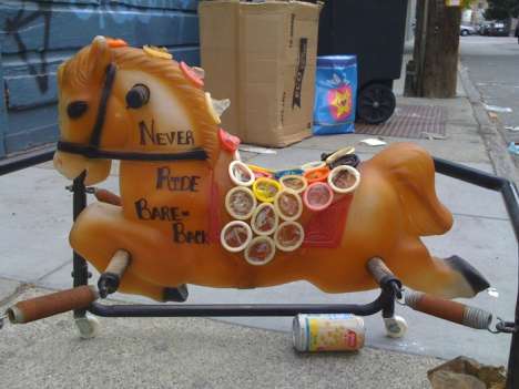Dans un registre plus mignon, un poney (ou un mini-cheval ?) d’une aire de jeux, décoré par un artiste anonyme.