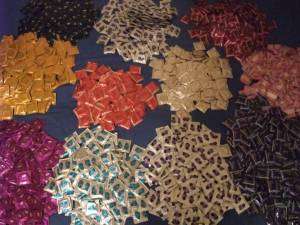 C’est ainsi qu’elle commence à récolter des préservatifs pour assembler sa création. Une association de santé et des centres de dépistage du VIH lui en fournissent. Elle améliore peu à peu sa technique, faisant divers essais.