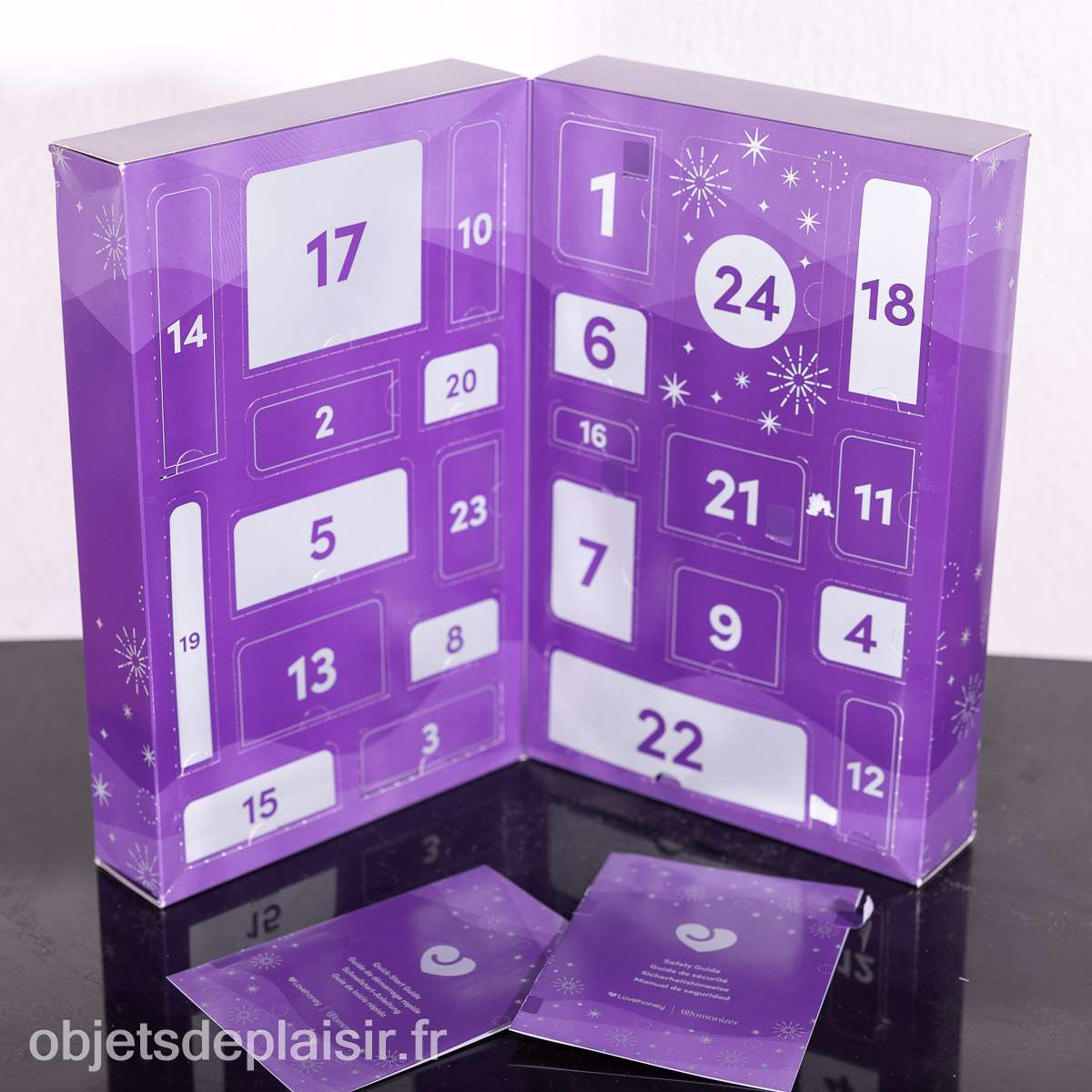 Lorsque nous avons reçu le colis, j’ai été surprise par sa taille. Le calendrier est sacrément volumineux ! Au programme, 24 cases, une par jour de décembre précédant Noël. Ces cases sont dans le désordre, probablement pour pouvoir mieux agencer les sextoys en fonction de leur taille et de leur forme, mais cela donne également un côté original à l’ensemble.