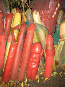 Ces pénis sculptés arborent fièrement toutes les teintes de l’arc-en-ciel, mais on observe une large prédominance de la couleur rouge.