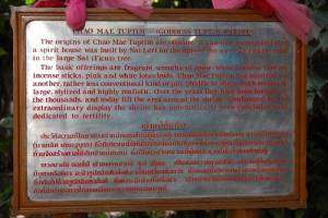 Un grand Sai, une variété de ficus, étend ses branches en ce lieu. L’autel qui s’y trouve est consacré à l’esprit qui résiderait dans cet arbre depuis des centaines d’années, la déesse Chao Tuptim.