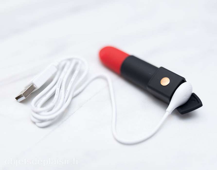 Visuellement, c’est un coup de maître. Il imite quasi-parfaitement un rouge à lèvres, d’un rouge assez vif, avec sa forme tubulaire élégante et son capuchon qui cliquète en place. C’est l’exact opposé du Womanizer 2Go (autrement nommé rouge à lèvres pour éléphantes myopes) : tant que l’on n’y regarde pas de trop près, il pourrait tromper n’importe qui.