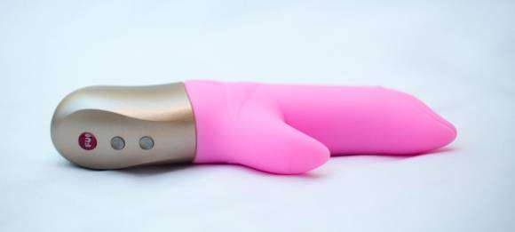 Le Dolly Bi de Fun Factory est un vibro dauphin rechargeable en silicone rose, de type rabbit.