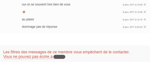 Cependant, parfois, certains oublient à quel point ils se sont montrés stricts dans le paramétrage de leurs filtres. Ils vous contactent donc, sans remarquer qu’ils vous ont accidentellement bloqué. Même si l’attirance est mutuelle, même si vous connaissez déjà ces personnes, vous êtes dans l’incapacité totale de leur répondre… Et ils en déduisent donc que vous les boudez, mais vous n’avez aucun moyen de leur signaler que ce n’est pas le cas.