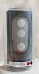 La boîte du Tenga Flip Hole Silver est la même que celle du Red : cylindrique, en plastique dur transparent.