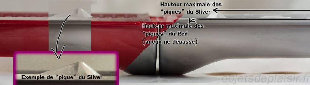 Sur le Silver, les motifs en reliefs dépassent : vous les croiserez obligatoirement sur votre chemin lorsque vous l’utiliserez. Alors que sur le Red, rien ne dépasse.