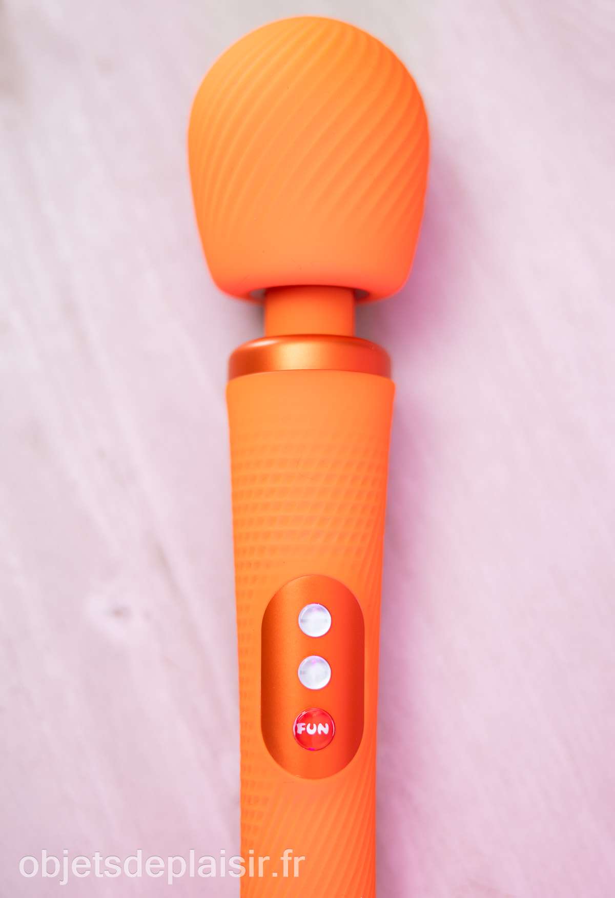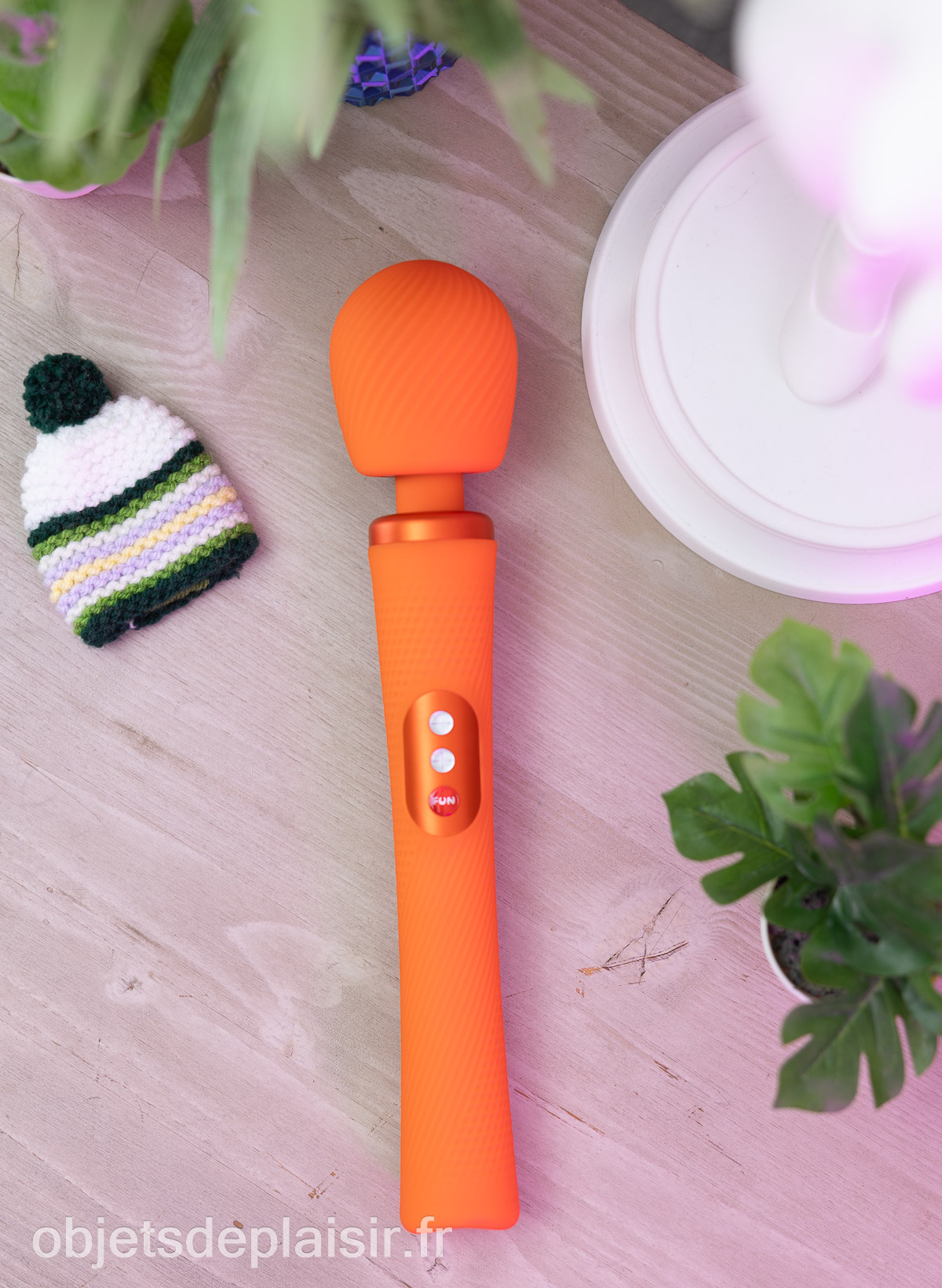 Dès que je l’ai tenu en main, j’ai remarqué à quel point il était léger : 430 grammes, nous dit sa fiche officielle (oui oui, c’est précis)… Comparé à mon Doxy Die Cast, c’est une véritable plume ! Mais ce qui m’a surprise, c’est cette sensation de densité concentrée dans la tête. Fun Factory a vraiment travaillé l’équilibre : le manche ne vibre presque pas, ce qui évite cet engourdissement désagréable dans les doigts après quelques minutes d’utilisation.