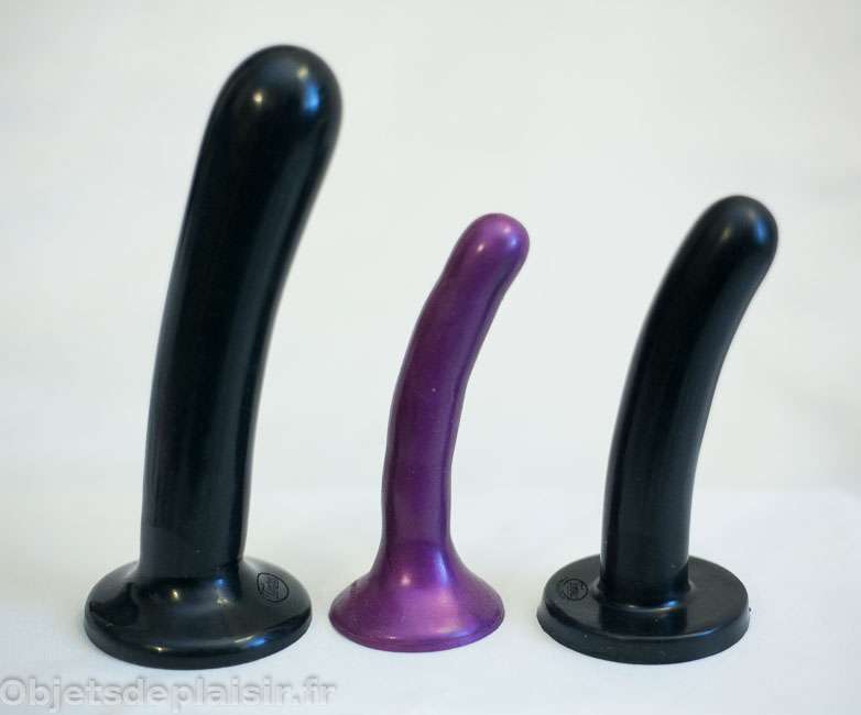 Les deux godes du kit Tantus Bend Over et celui du kit Sex and Mischief au centre