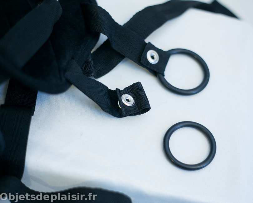 L’anneau le plus grand peut permettre de fixer sur le harnais un sextoy à base plate un peu plus large que ceux fournis. Pour indication, le Tantus Splash, qui est tout de même assez conséquent, passe, vraiment de justesse, mais il passe.