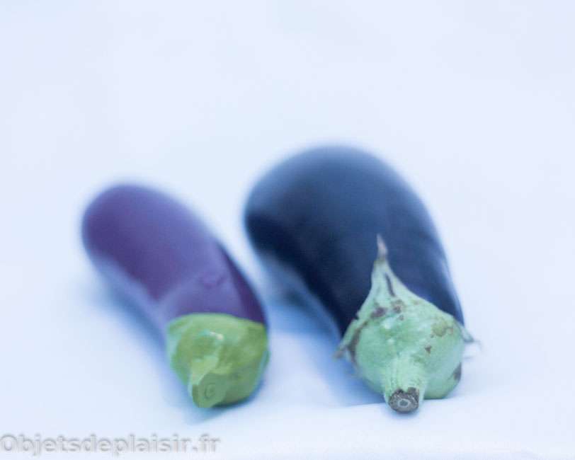 Et une pensée émue pour le triste sort de l’aubergine qui a posé pour la comparaison. Nous l’avons mangée peu de temps après la séance photo… Et elle n’a jamais eu l’occasion de servir de sextoy à qui que ce soit.