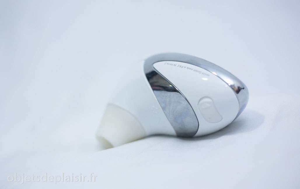 Le modèle blanc, que nous avons testé, est plus sobre, presque dépourvu de fioritures… Bon, ok, il a tout de même un strass en guise de bouton d’allumage, mais celui-ci est bien plus discret que le gigantesque brillant bling-bling du W100. Il s’agit en réalité d’un cristal de Swarovski. Mais autant, sur un Rosebud, je vois l’intérêt esthétique, autant sur le Womanizer W500, je ne l’aurais pas remarqué si je ne l’avais pas lu dans la description officielle.