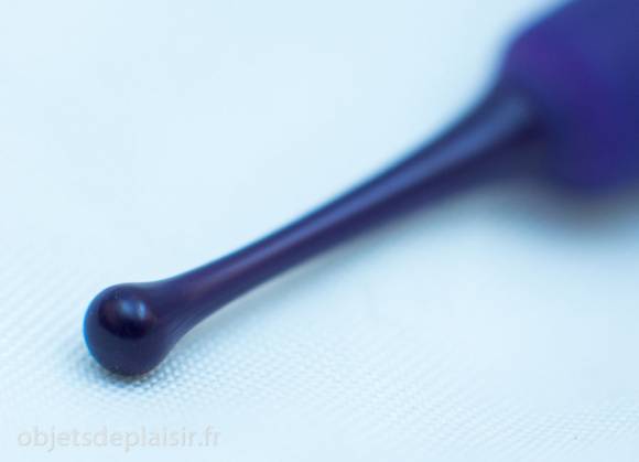 Avec sa pointe toute fine, dotée d’une boule à son extrémité, ne ressemble à aucun autre sextoy connu. En fait, il a l’air d’un gros stylo violet. Ou peut-être d’une brosse à dents électrique dotée d’un embout un peu chelou.