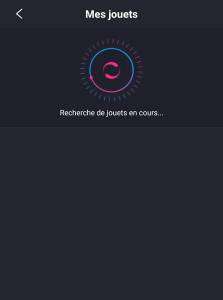 Une fois l’appli en route, la première étape est de connecter le sextoy, en cliquant sur petit bouton, dans le coin haut gauche de l’écran.